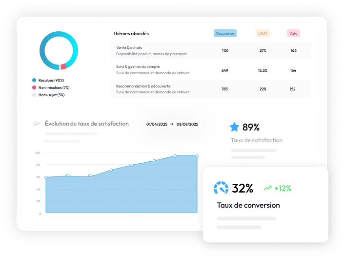 Plateforme d’IA agentique no-code, qui convertit vos visiteurs, résout vos tickets et vous montre exactement combien elle vous rapporte.